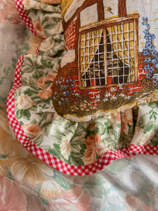 Hand stitched thatched cottage frill cushion.