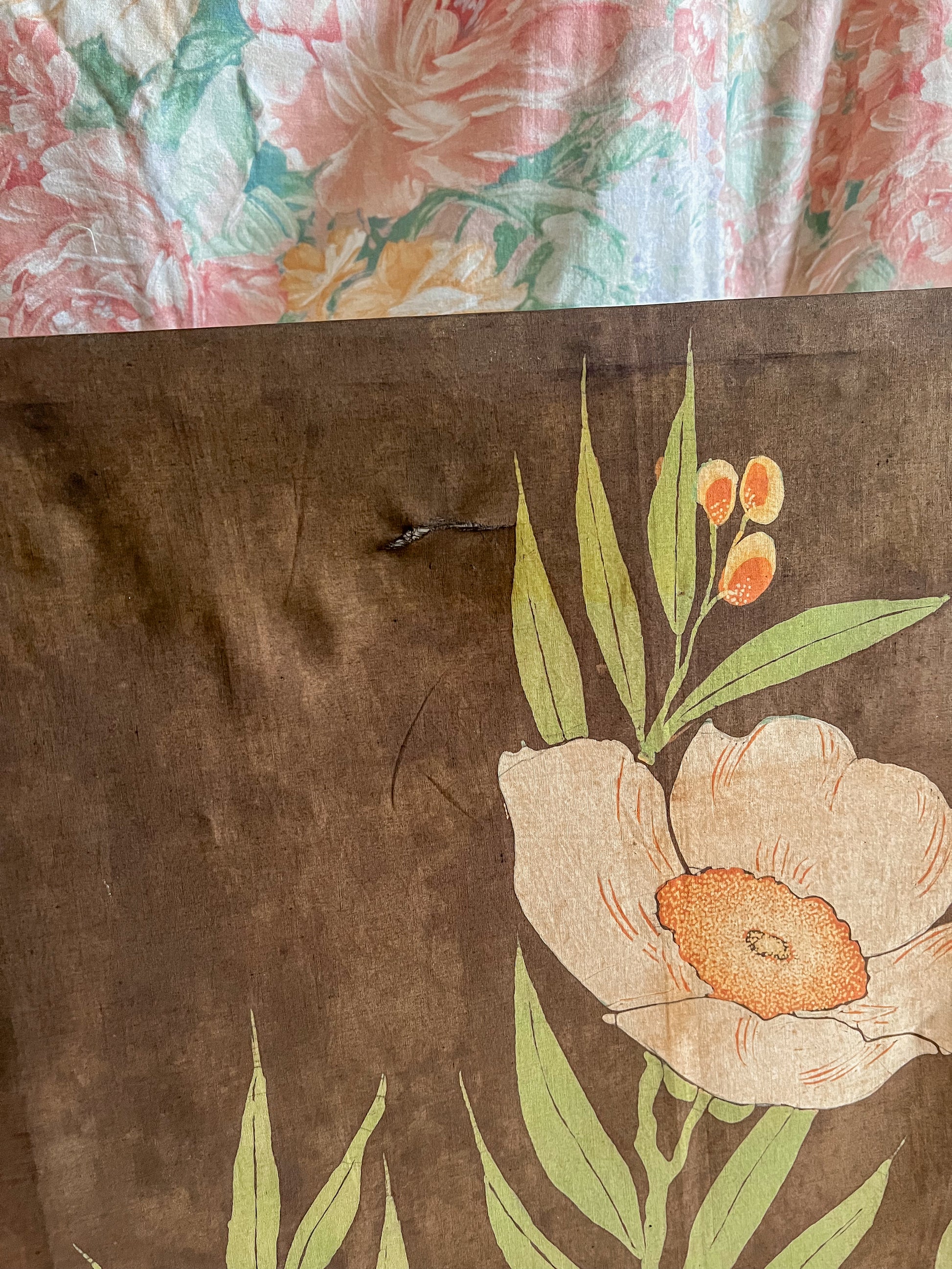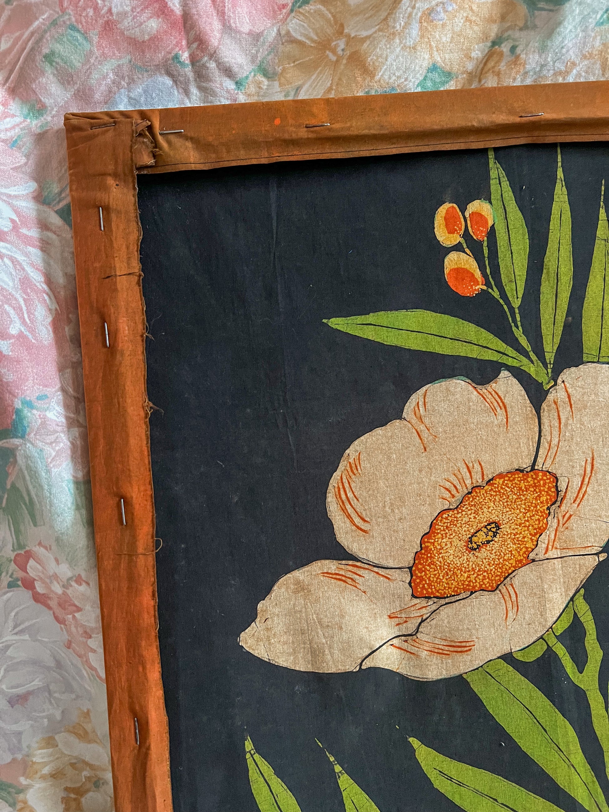 Vintage/antique fabric floral wall hanging